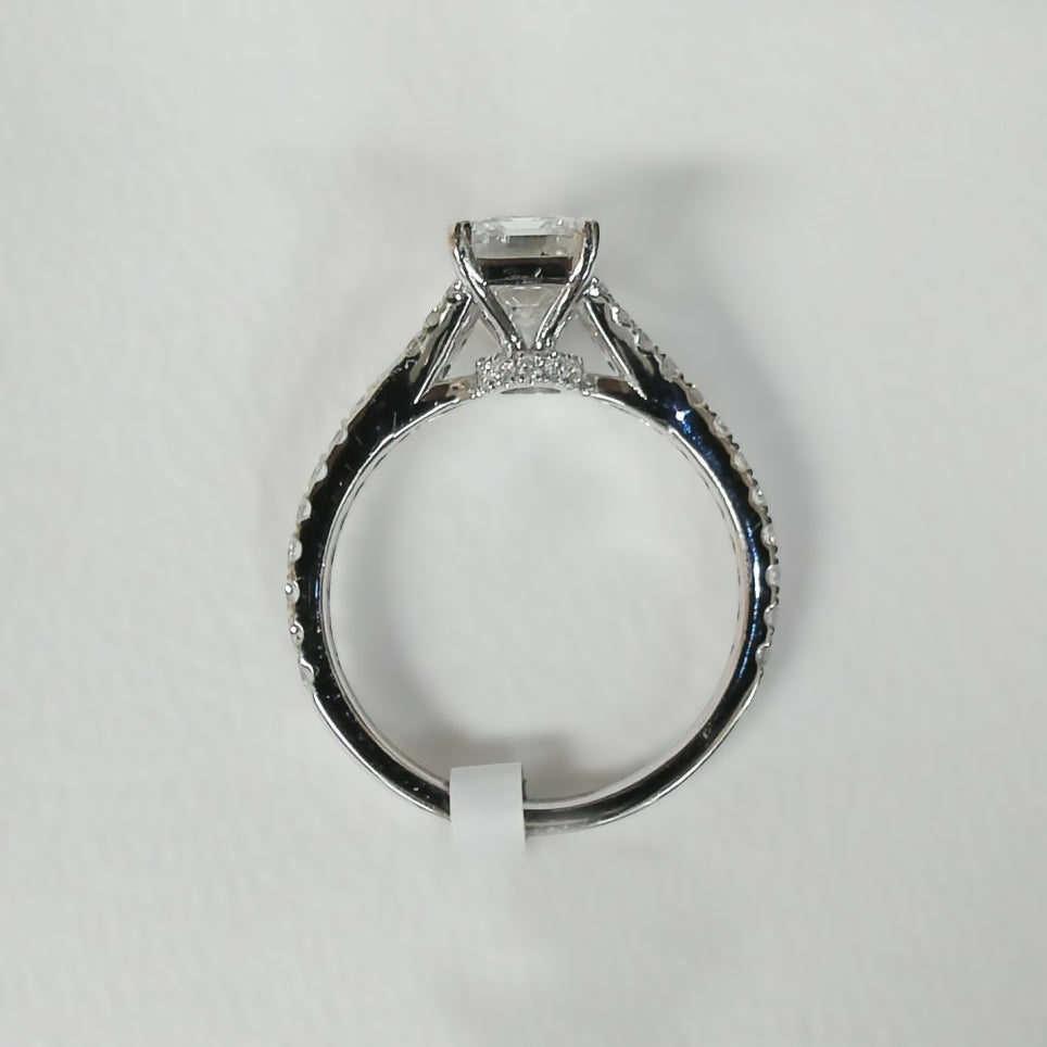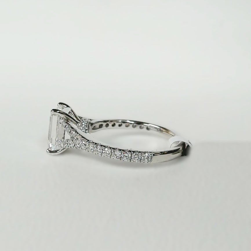 Center Stone: Emerald-Cut LAB GROWN Diamond with a carat weight of 2.00CT, F-G in color and VS1 in clarity