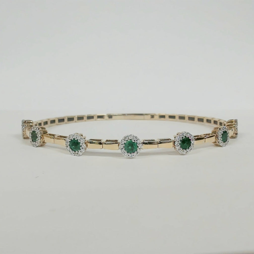 14K Emerald & Diamond Flexible Bangle Bracelet
