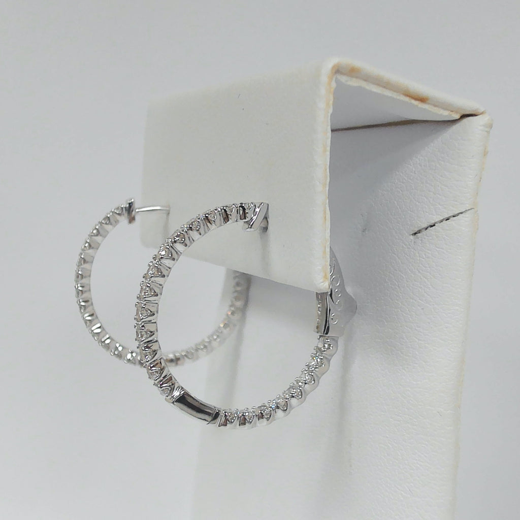 14K .94TW Diamond Round Inside/Outside Hoop Earrings