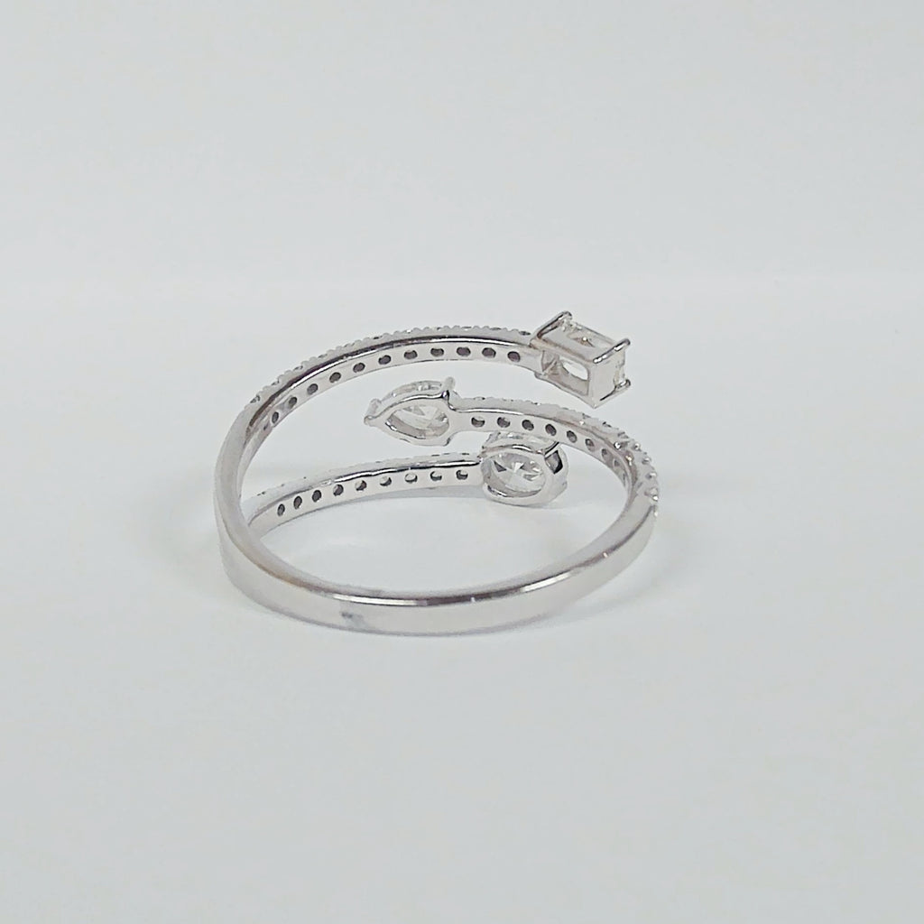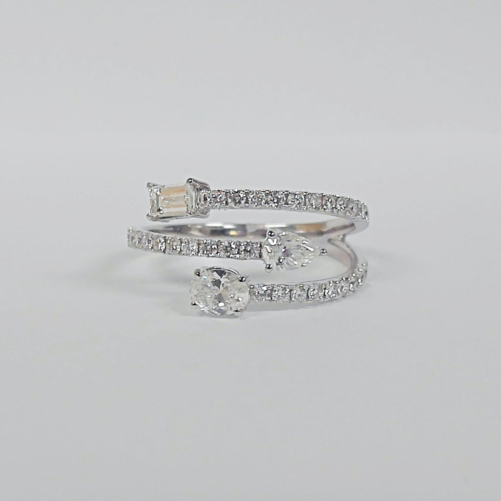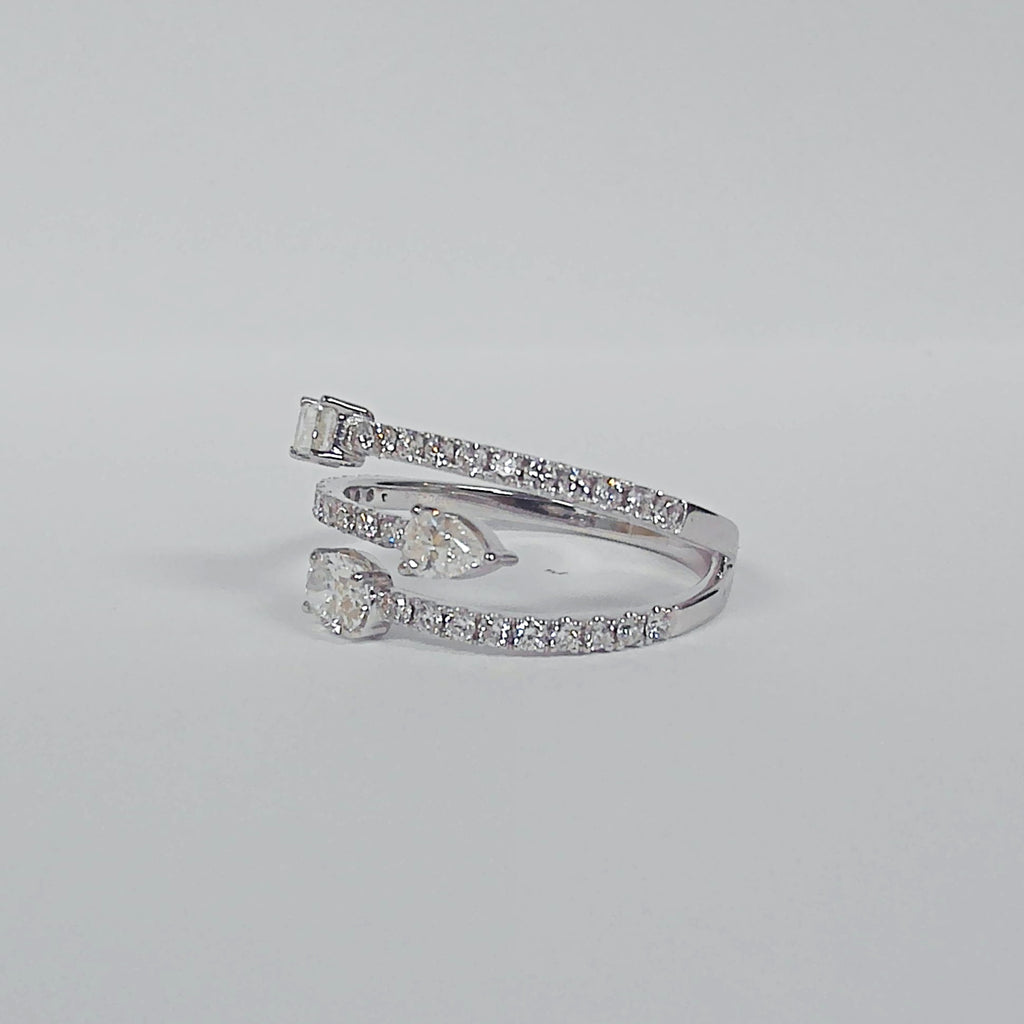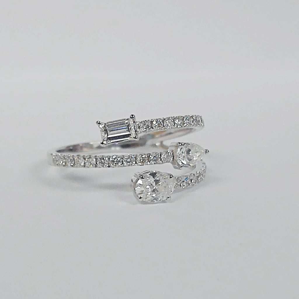 14K Baguette, Oval & Pear Diamond Double Negative Space Ring