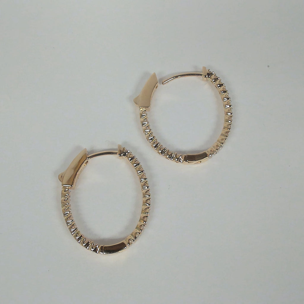 14KYG .94TW Diamond Oval Inside/Outside Hoops