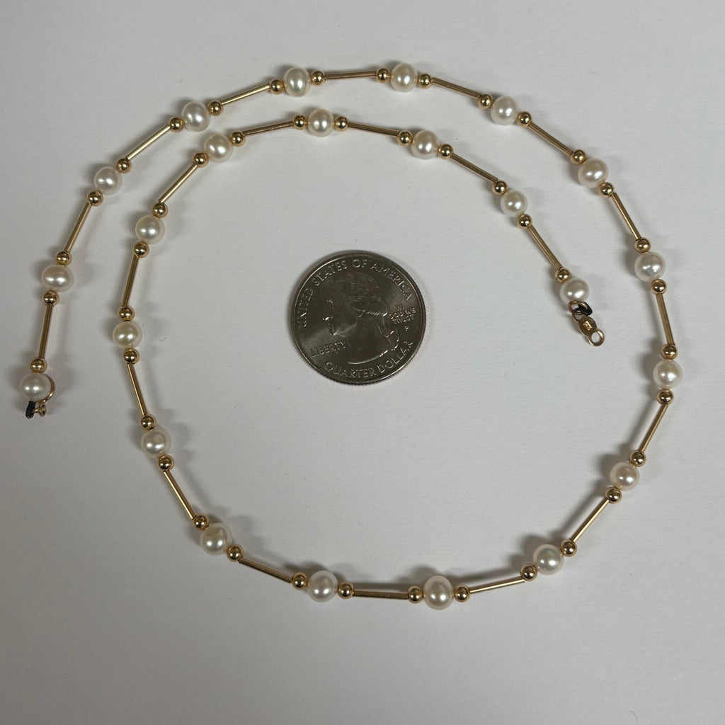 18" 14K Oval Freshwater Pearl, Gold Bead & Bar Link Necklace