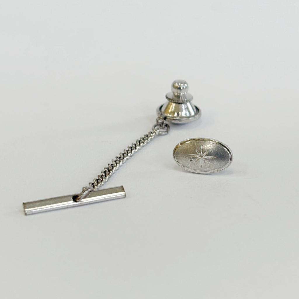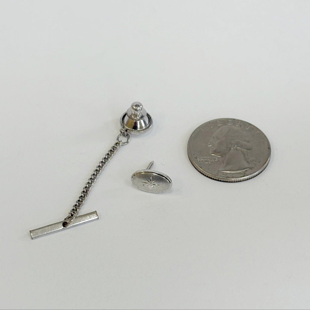 Sterling Silver Oval Diamond-Cut Tie-Tac