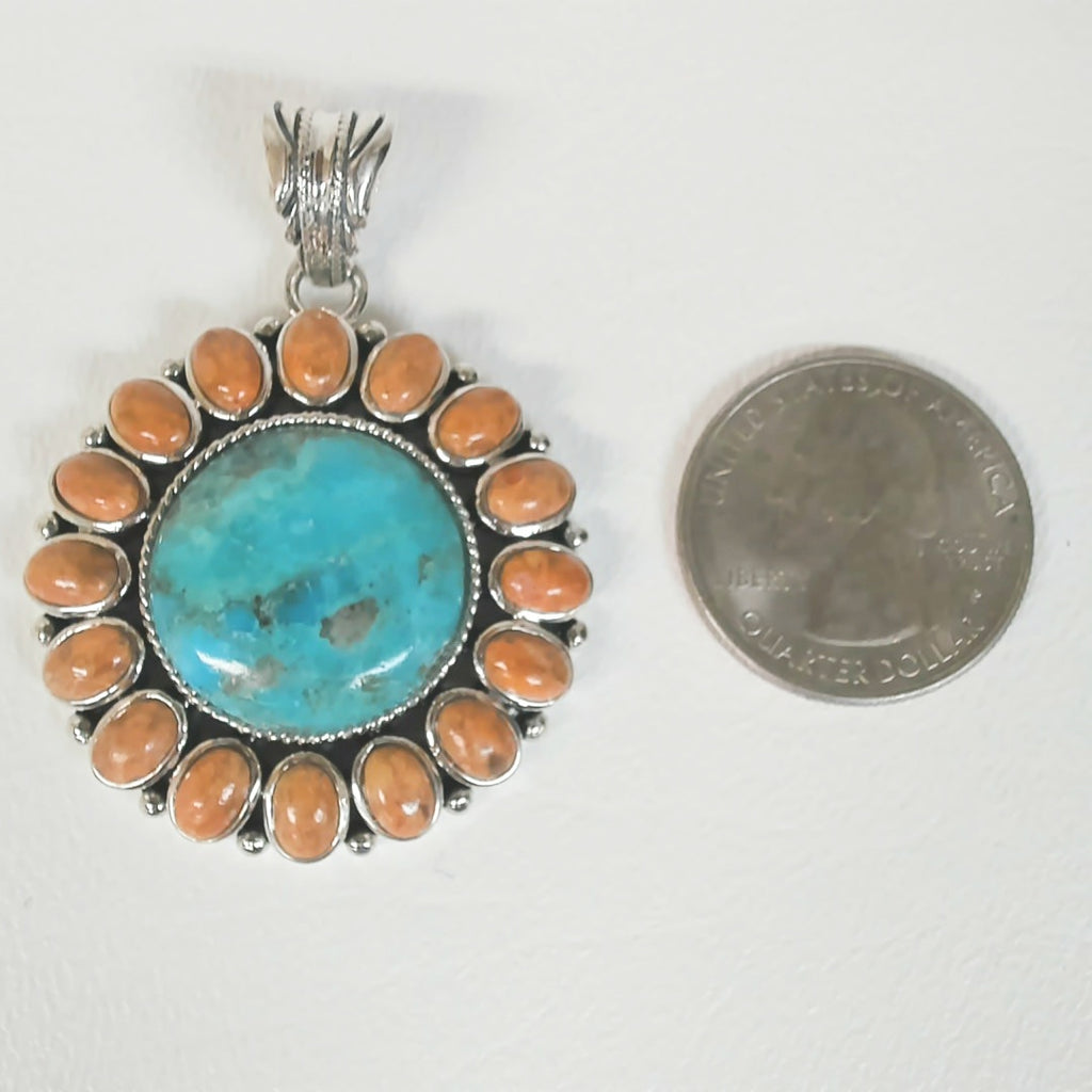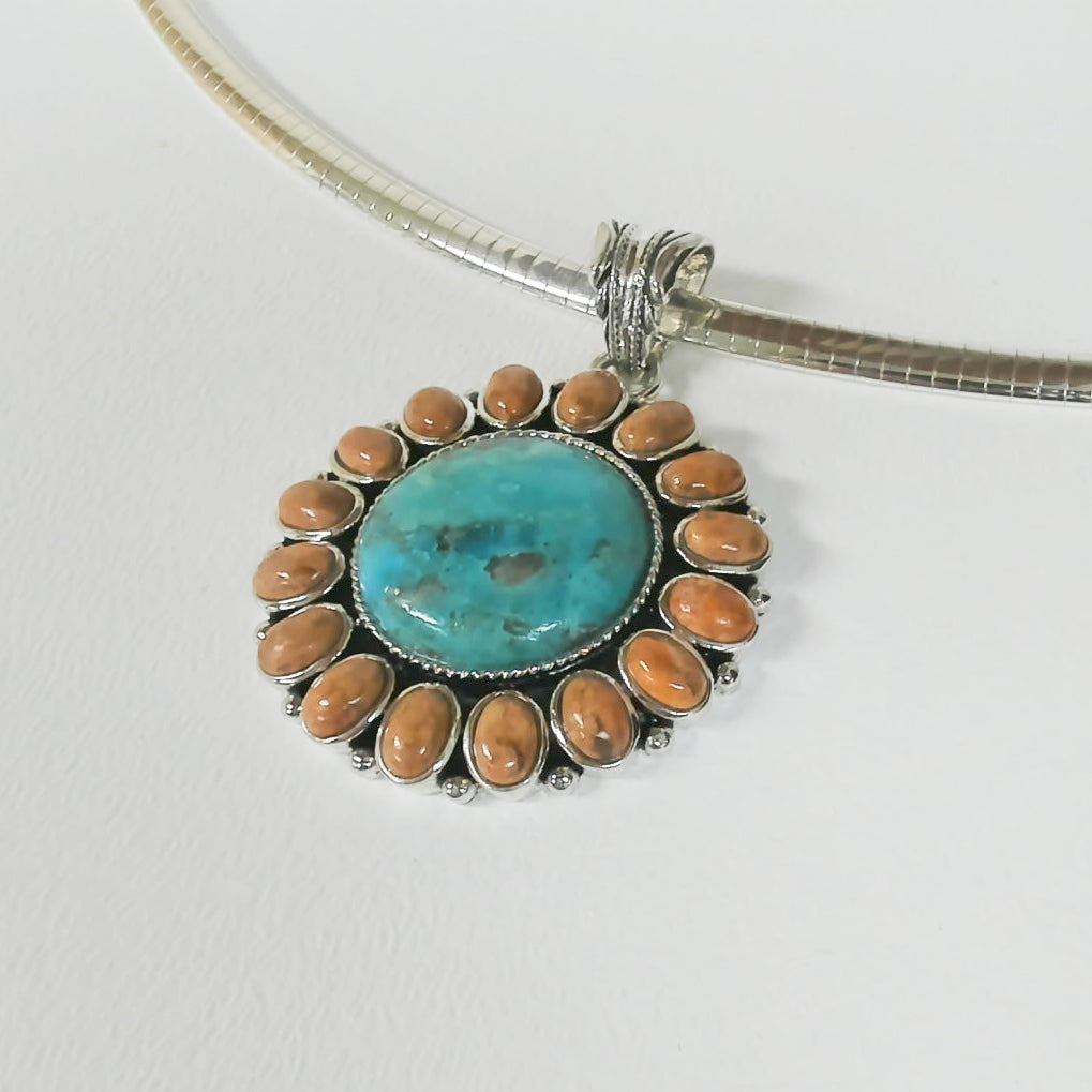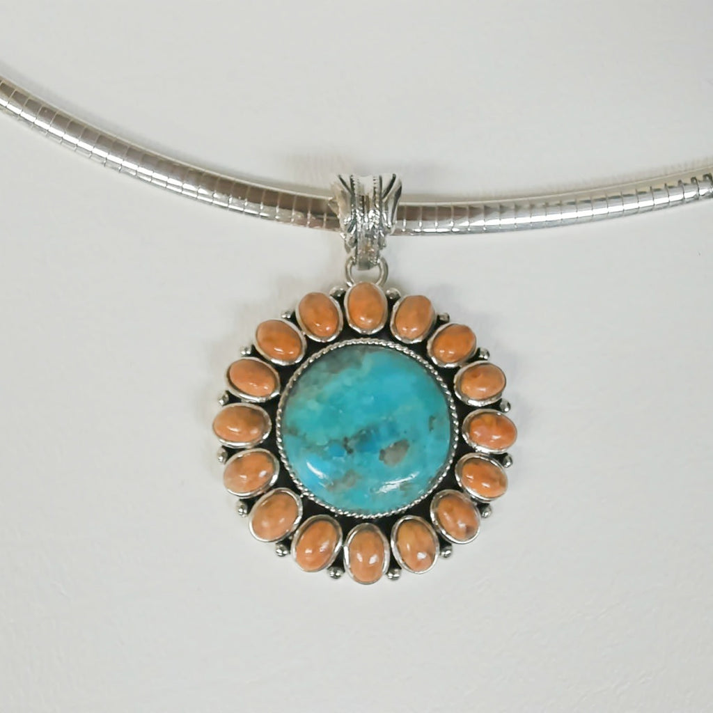 Sterling Turquoise and Coral Sunburst Necklace