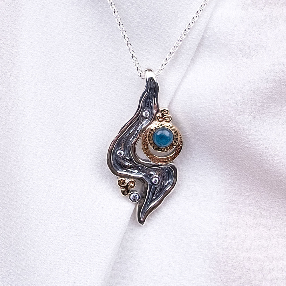Sterling/10K Apatite & CZ "Rocks N Rivers" Necklace