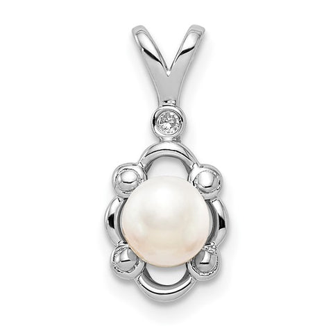 18" Sterling Silver Round Freshwater Pearl & Diamond Pendant Necklace