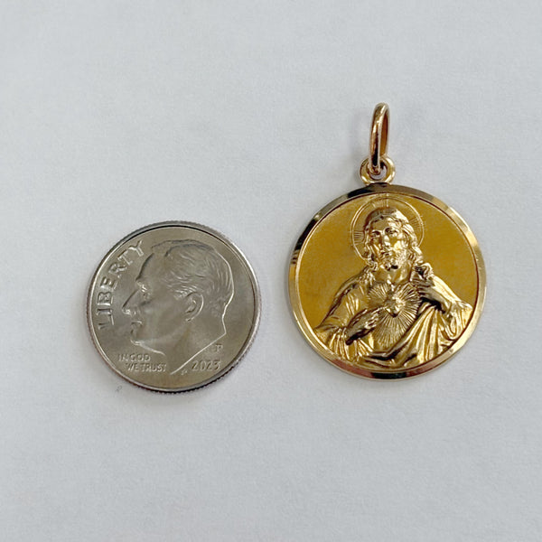18K Sacred Heart of Jesus / Mother Mary Medal